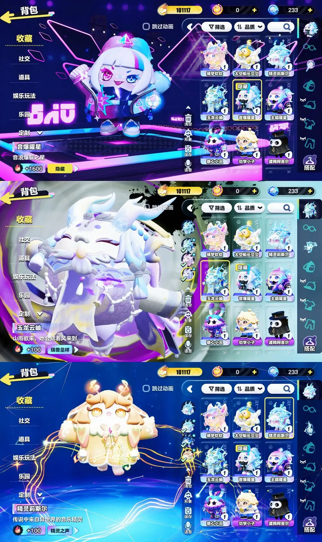 ☀️至臻:惑心小丑-太空船长贝贝-精灵莉斯尔-主唱曜星-捕梦软软-精灵莉斯尔-玉龙云岫